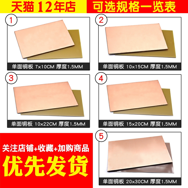 Single-sided covered copper plate 7 * 10 (2 sheets) Single-sided copperplate 10 * 15 (1 sheet) Single-face cladding copper plate 10 * 22 (1 sheet) Single-face cladding copper plate 15 * 20 (1 sheet) single