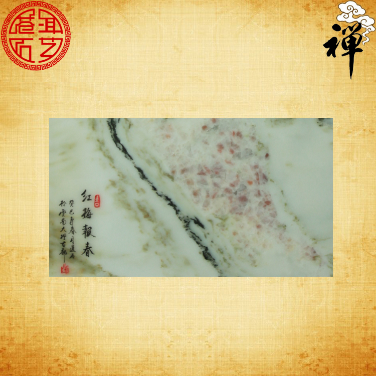 Natural New Marble Painting "Red Plum Spring" Home Office Strange Stone Hanging Screen Boutique - Taobao