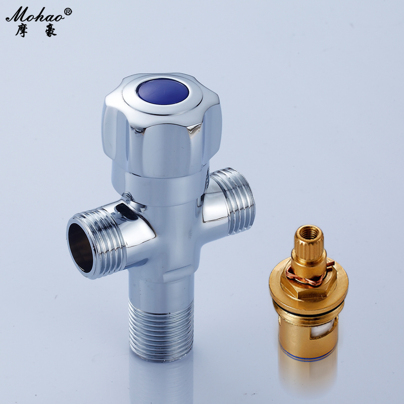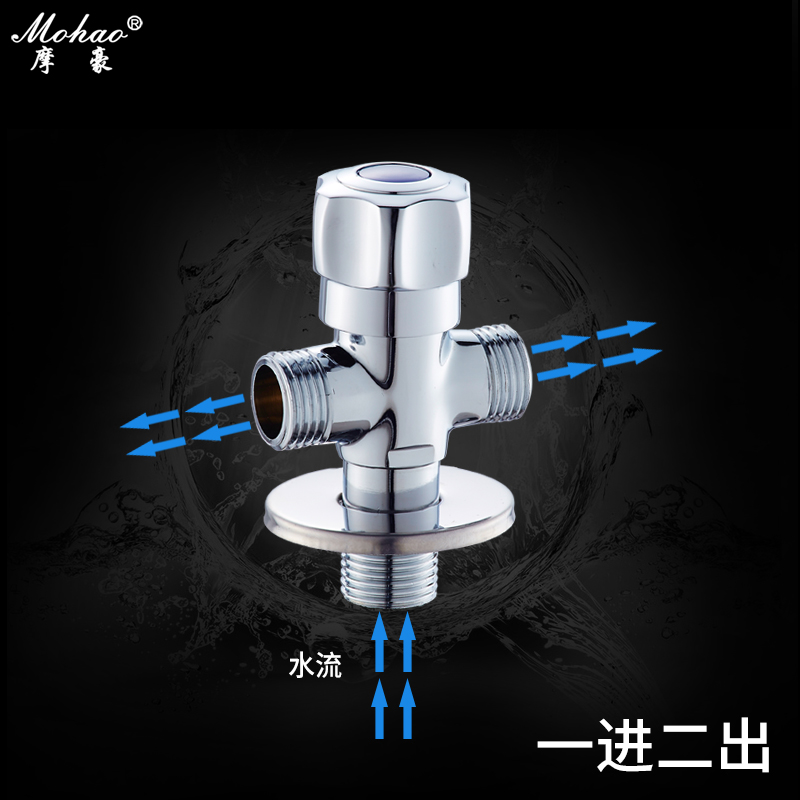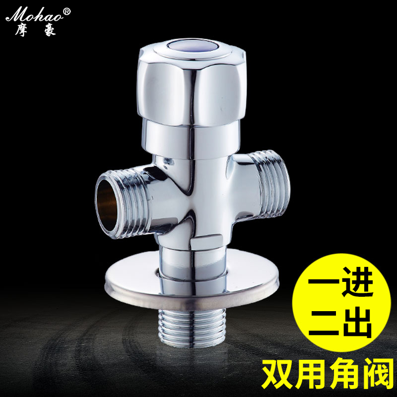 Three-way angle valve one in two out copper thickened hot and cold water Universal 4-point toilet valve double water water separator