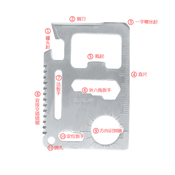 Car Supplies Outdoor Multifunction Blade Portable BOTTLE OPENER CAMPING SELF DRIVING TOOL CARD KNIFE