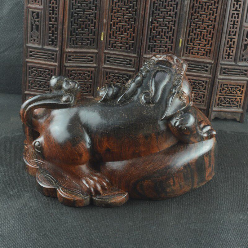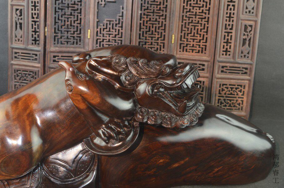 Laos red sour branch Pixiu wood carving retro Chinese porch opening decoration mahogany hand-carved craft gift decoration