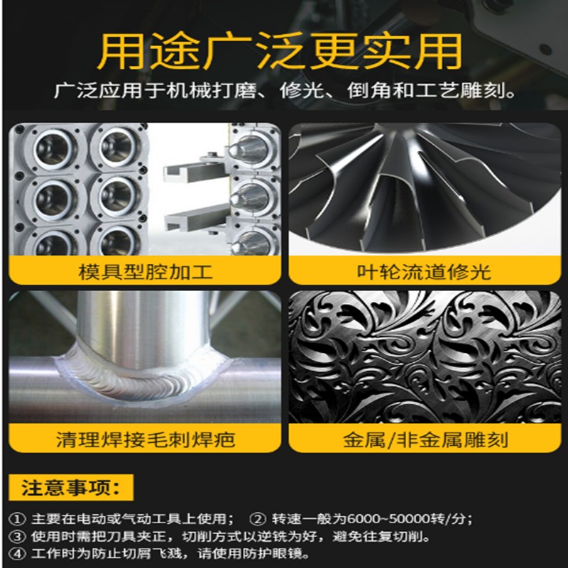 Tungsten carbide rotary file metal grinding head round small woodworking root carving tungsten steel electric milling cutter 3*3