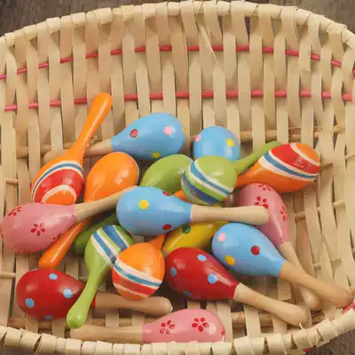 Children's musical instrument sand hammer educational toy Baby 0-6 months 6-12 months wooden hand bell toy