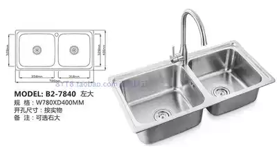 Left big double sink, right big double sink, left big drain basket, right big drain basket, left big drain basket, all copper faucet, right big drain basket, outlet full copper faucet, left large drain basket and stainless steel faucet, right Big
