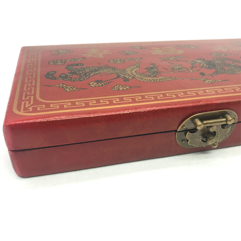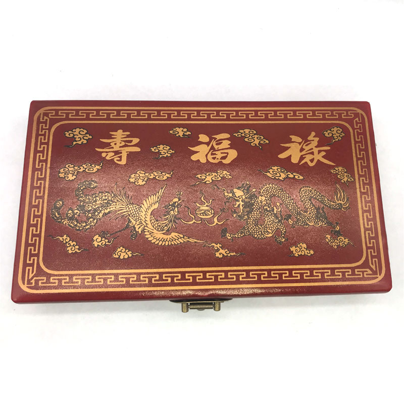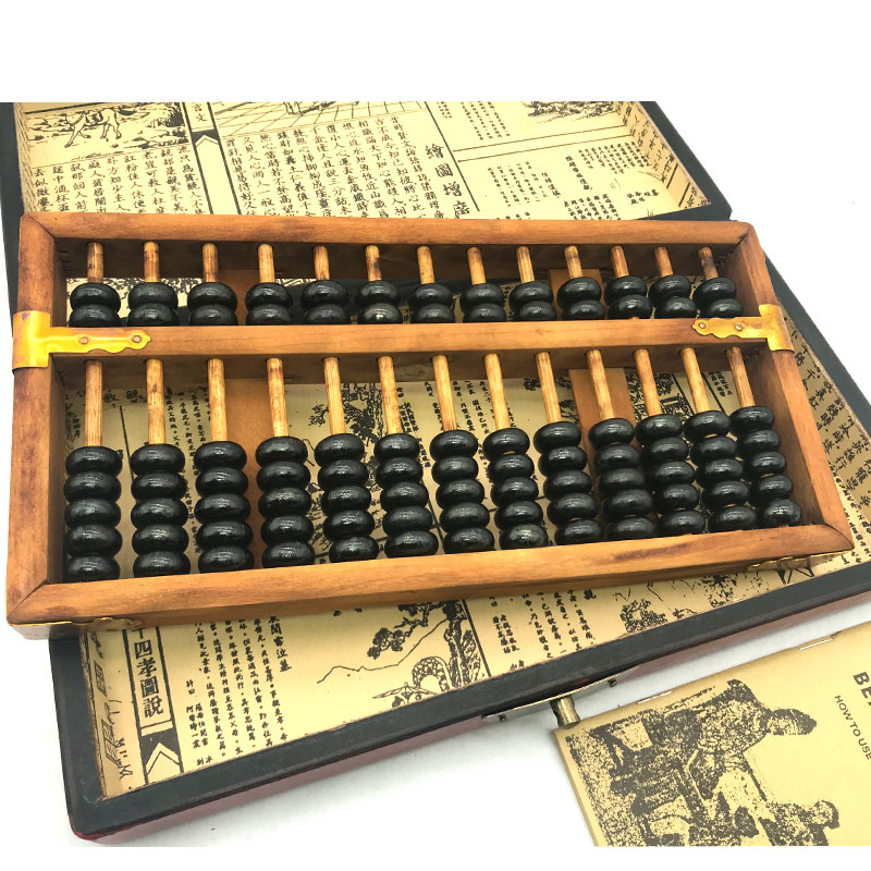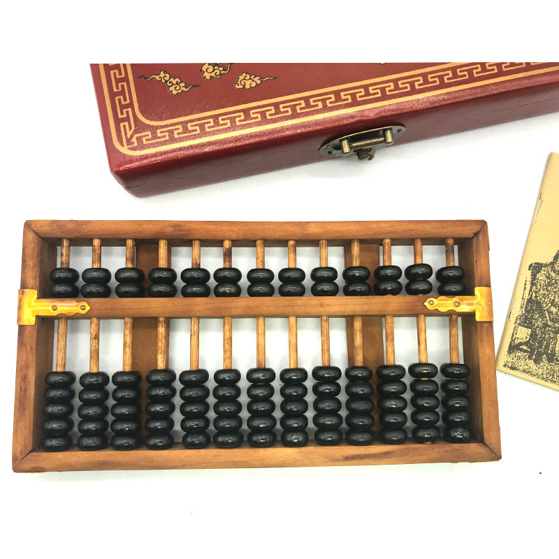 Antique 13-speed abacus with dragon and phoenix pattern wooden box Retro gift nostalgic abacus leather box classic foreign affairs gift