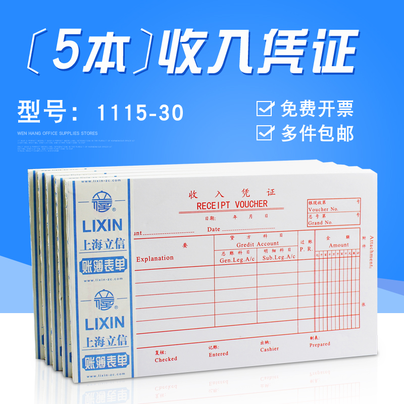 5 This] Shanghai Lixin Income Credentials Cash Income Ticket Generic Bookkeeping Voucher Handwritten Financial Accounting Supplies Blank Voucher Paper 1115 -30 - Taobao