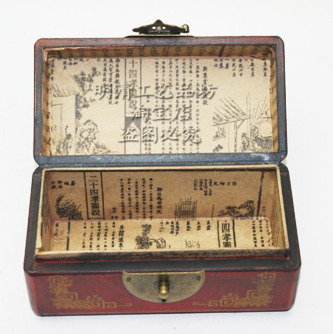 Imitation antique wood case imitation ancient leather case imitation ancient first decorated box Steady Private Containing Box Interior Painting Crafts Gift Hem small pillow case containing box