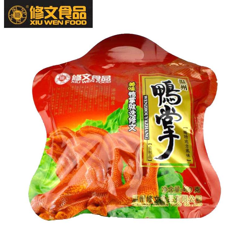 Wenzhou special snack Snack Xiuwen duck paw Big duck paw 400g*2 packs of duck feet and claws to send a tote bag