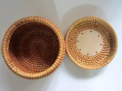 Vietnam imported bamboo rattan craft bamboo basket Autumn rattan ornaments round small storage bamboo basket Pu'er tea packaging box