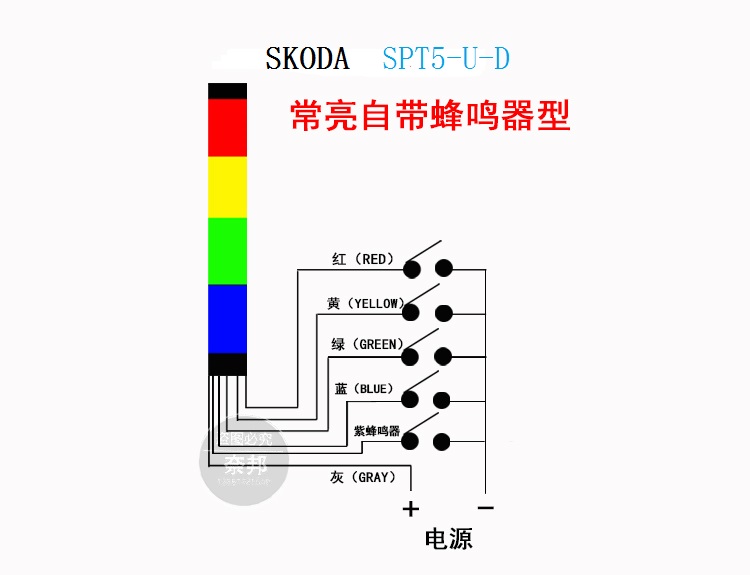 Skoda LED three-color signal warning alarm light SPT5-U-D always on and buzzing 12v 24V 220V