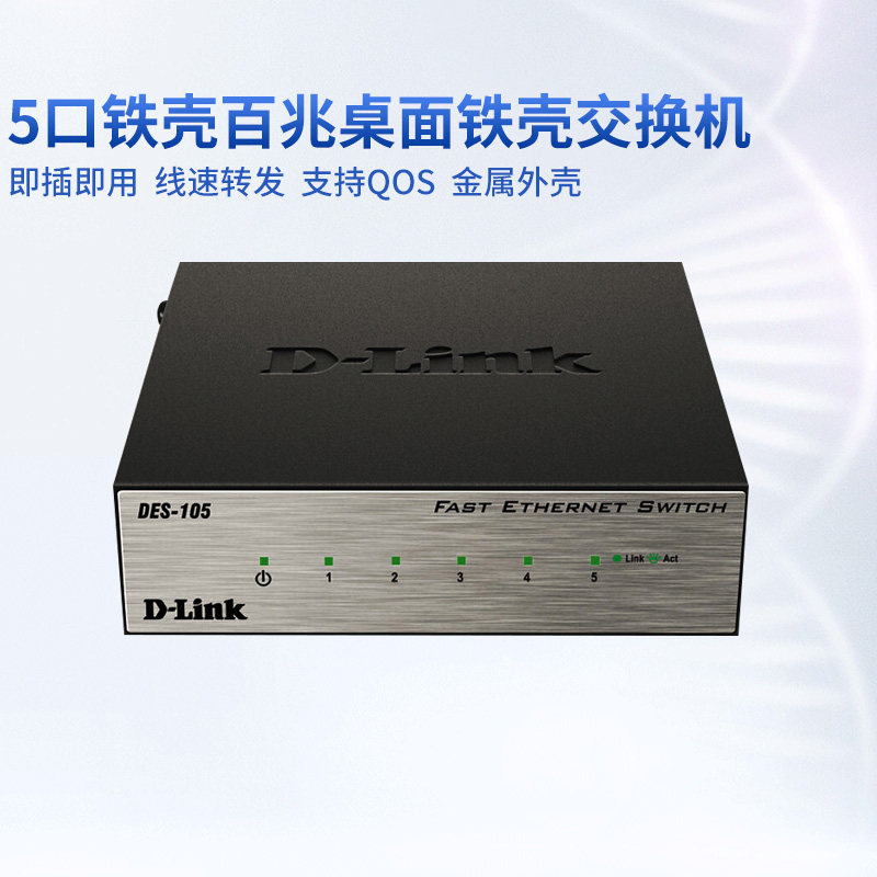 30 days no reason to return Youxun D-Link DES-105 5-port iron shell 100 Megabyte desktop iron shell switch