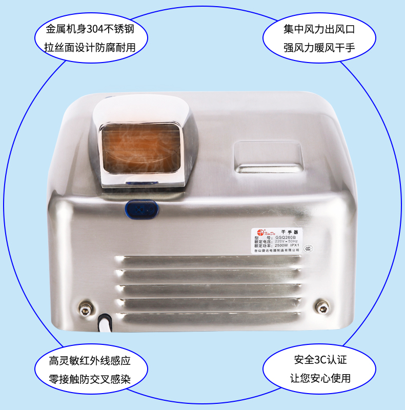 Cinda dryer GSQ - 250B stainless steel dryer restaurant dry mobile phone 360 degree rotating outlet