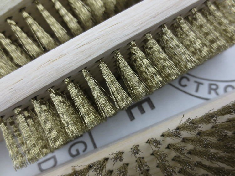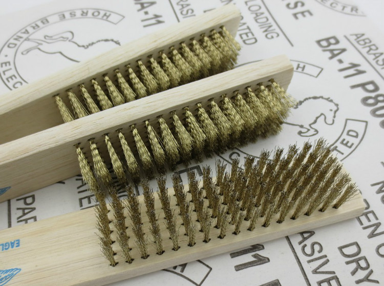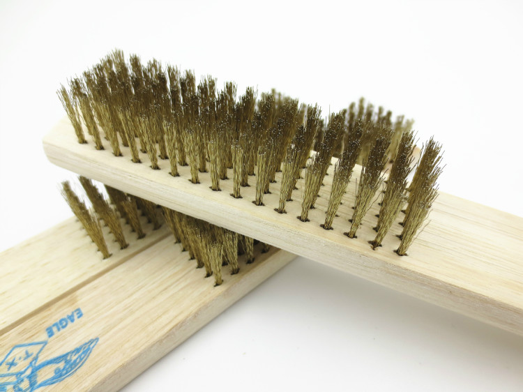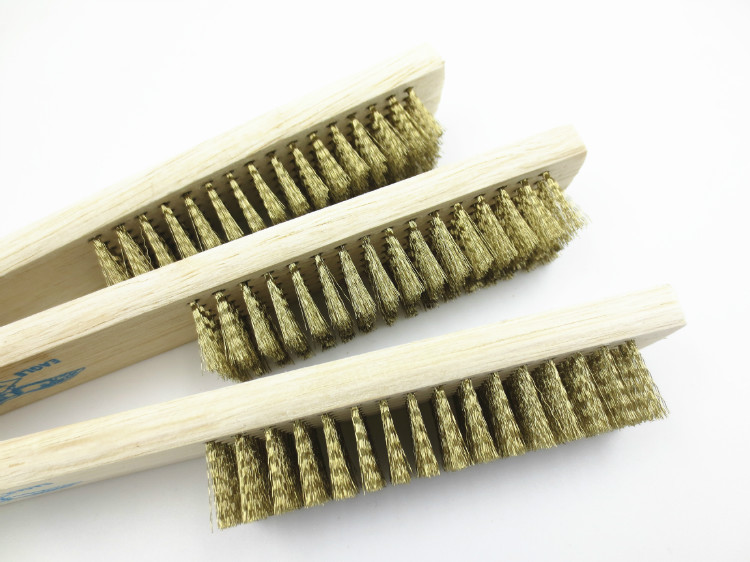 Wooden handle copper plated steel wire brush metal surface cleaning brush except lacquer rust removal brush wire plate brush