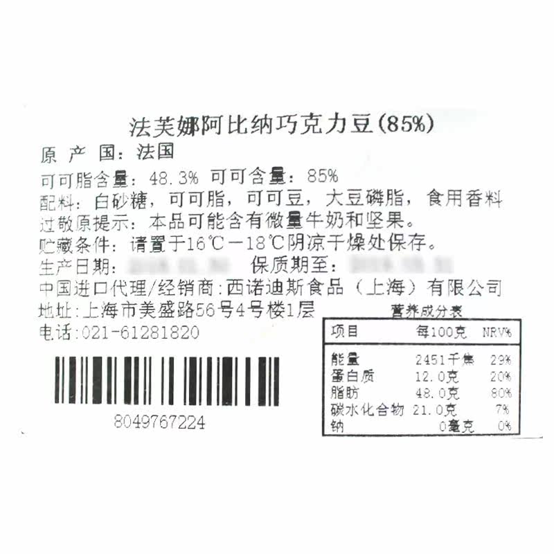 French imported Fafna Abina dark chocolate coin 3kg pure cocoa butter content 85% cake baking ingredients