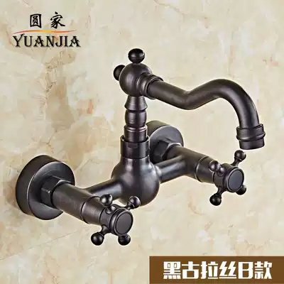 European-style all-copper antique wall faucet washbasin double handle double hole rotatable wall-mounted retro hot and cold water faucet