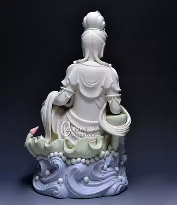 DeChina Ceramics 13-inch Water and Moon View Bodhisattva Buddha Statue Home Enshrined Decoration White Porcelain Craft Gifts Decoration Buddhist Supplies