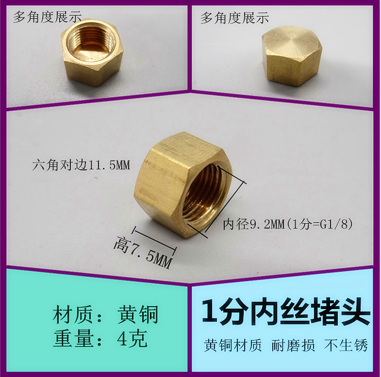 Copper 4 points External tooth blocking plug (11g) Copper 4 points Inner tooth polygonal blocking cap (14g) Copper 4 points Hexagonal internal plug (15 5g) Copper 6 points External tooth blocking plug (27g) Copper 6 points Internal tooth plug