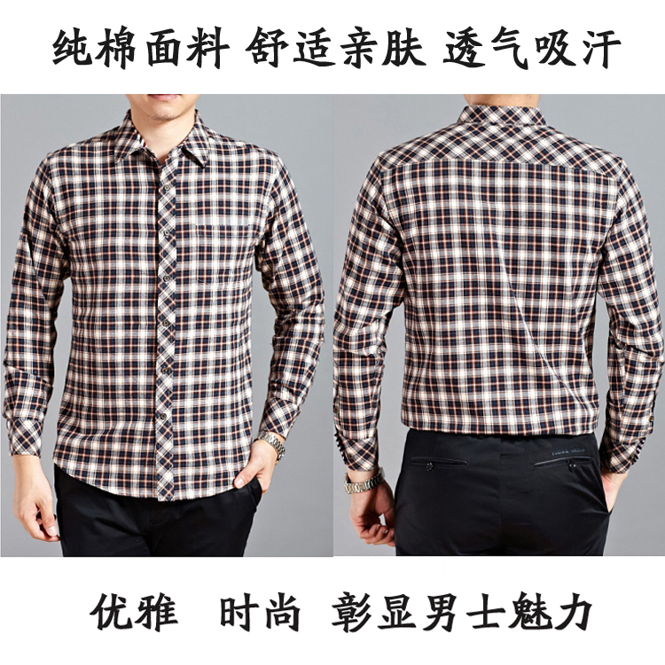 Pure Cotton Old Coarse Cloth Shirt Male Green Middle Aged Long Sleeve Plaid Striped Full Cotton Dad Shirt Inch Spring Autumn Free of ironing