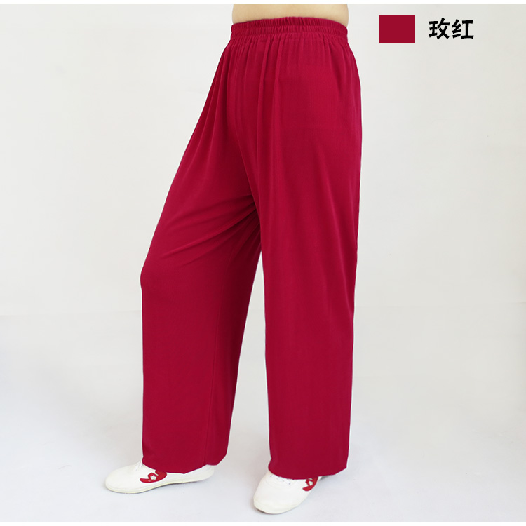 High Elastic Ice Silk Wood Lan Pants Tai Chi Pants Dance Practice Pants Middle Aged Summer Cool Mulan Boxing Light Cage Pants