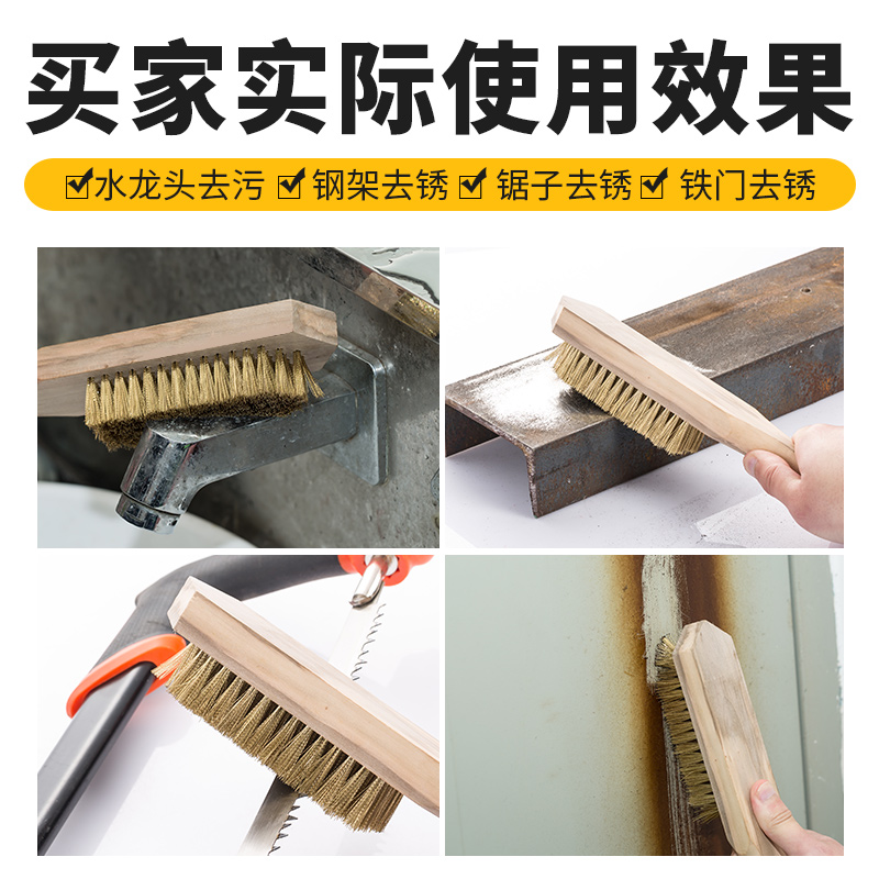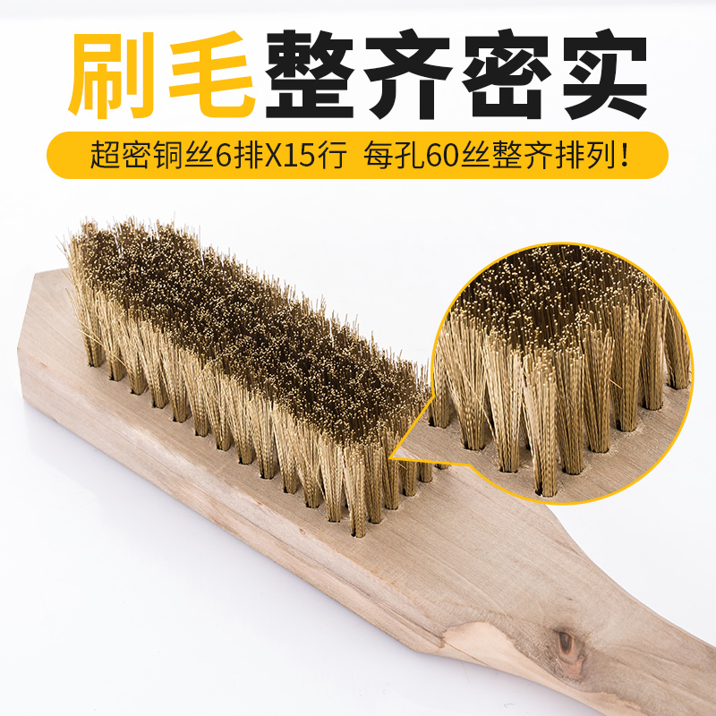Pure brass wire brushed rust brush cleaning brush brass wire brush wood handle brushed plate brush thickened encrypted big number