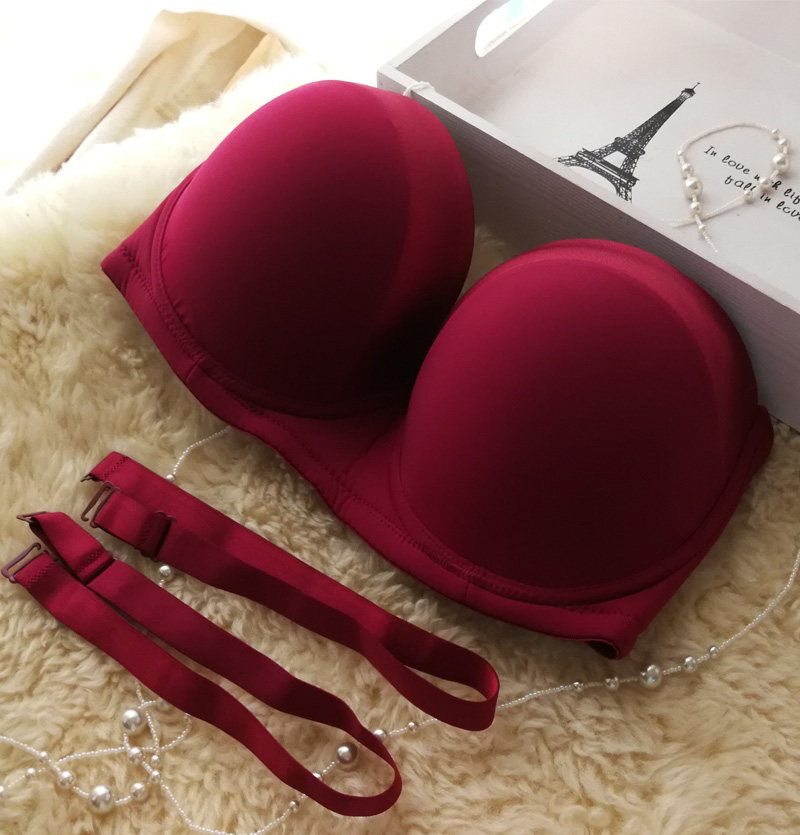 Glossy non-slip half cup strapless large size chest silicone strip dress Wedding bra G cup H cup E cup CDF cup Invisible