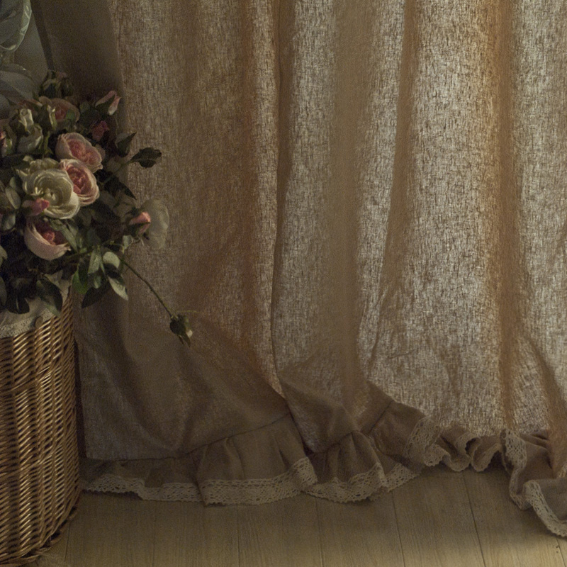 (3 m homes) Natural and wind linen curtains Japanese style cotton linen drapes set to customize cotton cloth lotus leaf lace