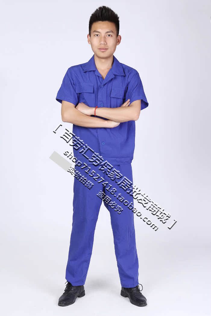Deep blue washed with short sleeves workwear Summer workwear Male suit Factory half sleeve workwear Bao blue long