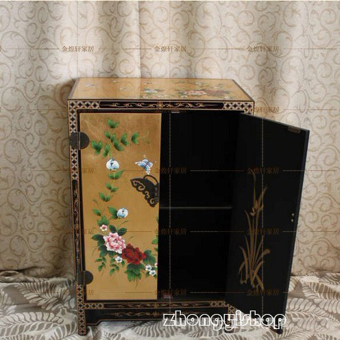 Traditional Style Antique Furniture Innate modern Chinese furniture Furniture Closet Footwear Cabinet Containing Cabinet Gold Leaf Peony