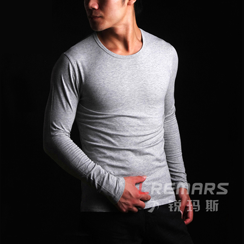 Rumah men's long sleeve T-shirt male round collar tight T-shirt male high play Laika cotton sashimi with undershirt long sleeve male