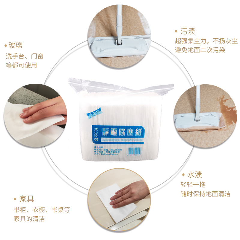 Wood bear 100 piece electrostatic dust removal cloth flat mop replacement cloth floor cleaning dust removal paper sticky hair dust removal