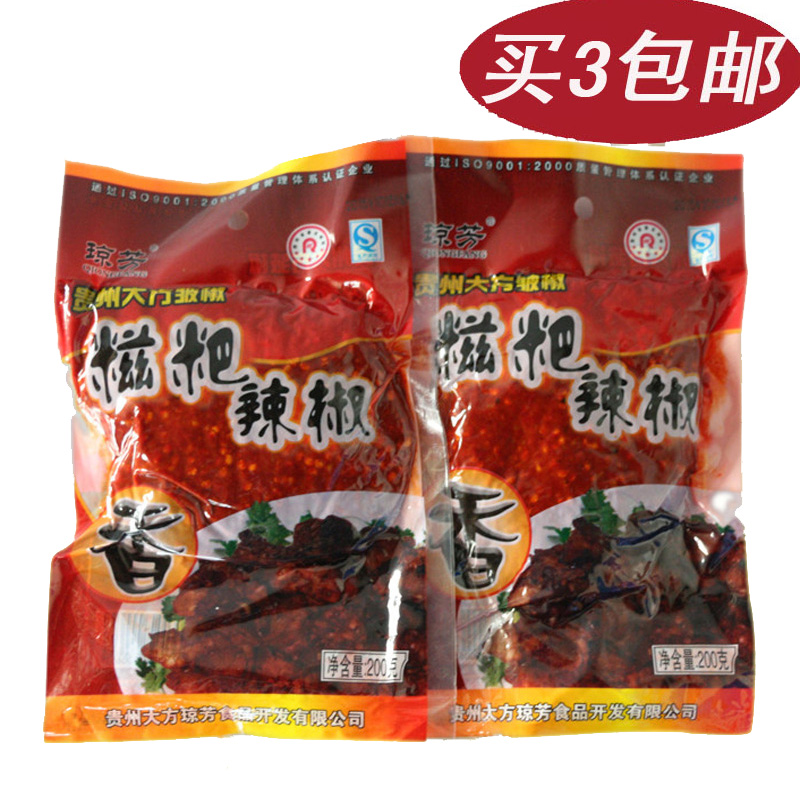 3 packs of Guizhou special products Qiongfang Glutinous Rice Cake Chilli 200 gr Seasoning Oil Splash Hot Chili Chicken Ingredients