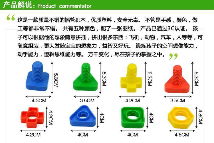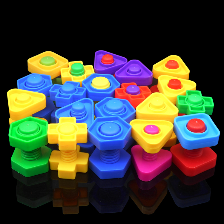 1-3-4-5 years old teaching aids toy plastic patchwork block screw bumper shape pairing nut assembly combination