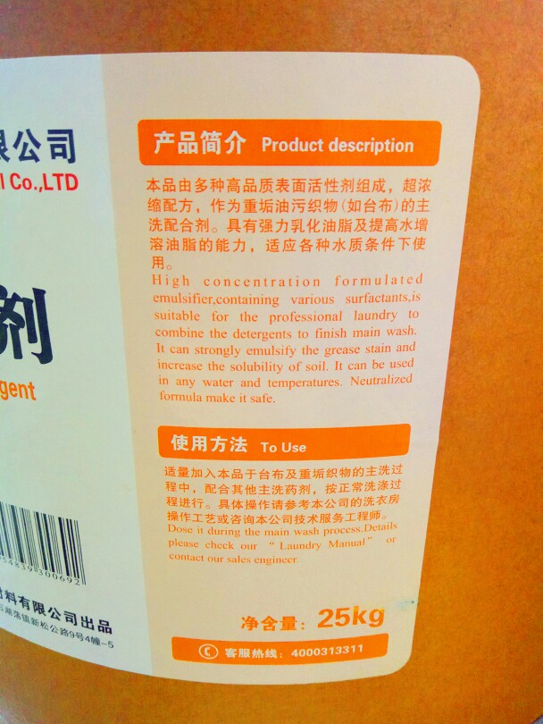 Lazy Star ultra concentrated emulsifier 25KG heavy oil emulsifier Laundry Hotel Tablecloth kitchen emulsifier cleaner