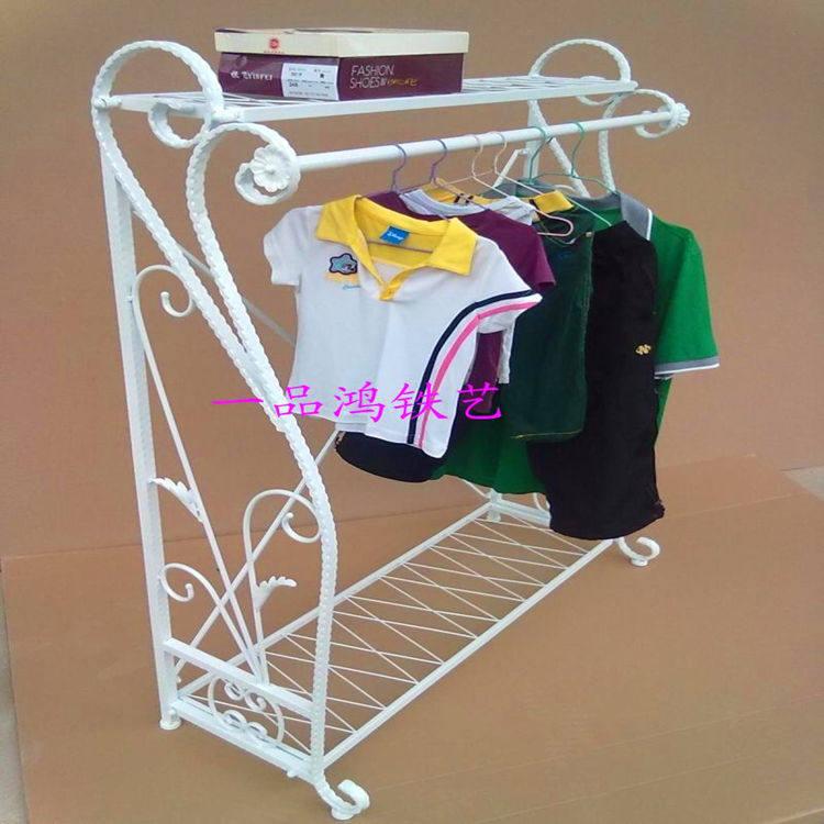 Wrought iron coat rack Clothing display rack Bedroom shoe bag rack Floor-to-ceiling hanger Shop clothing rack