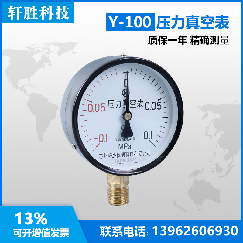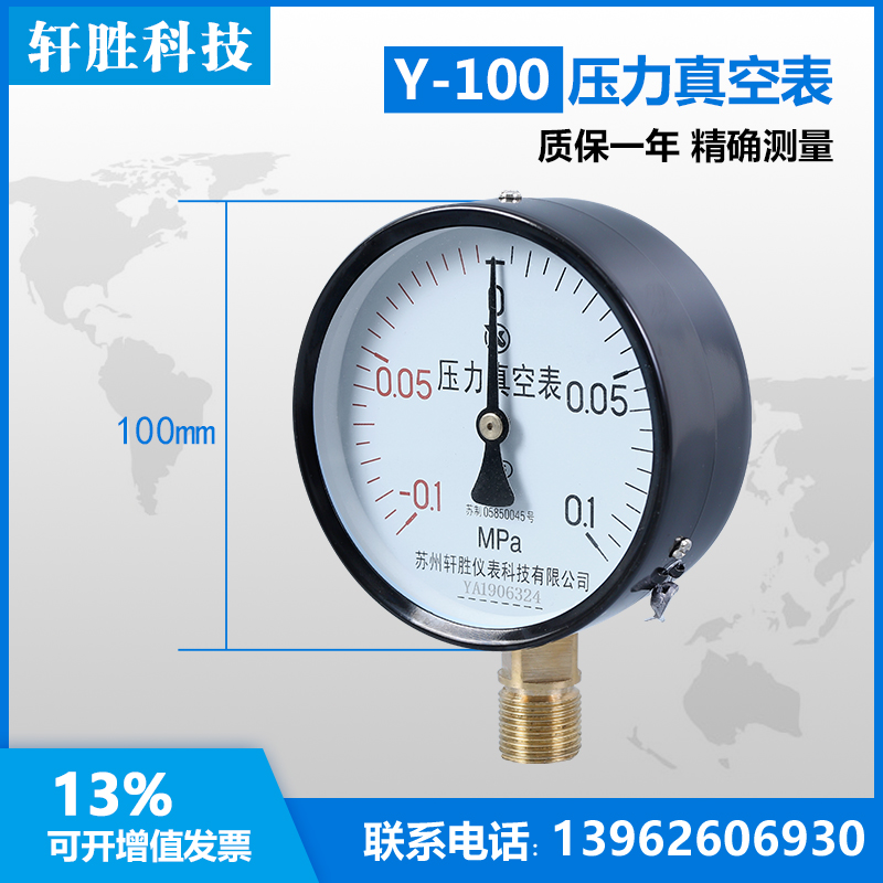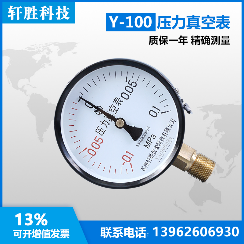 Y100 -0 1-0 1MPa Pressure Vacuum Watch Pointer Pointer Point Positive and Negative Pressure Watch Suzhou Xuan Sheng
