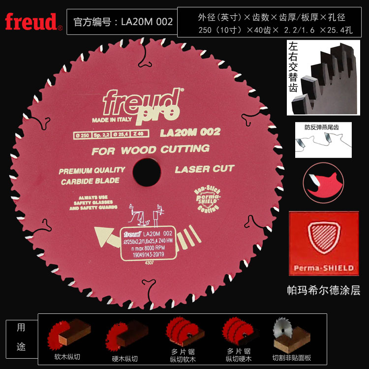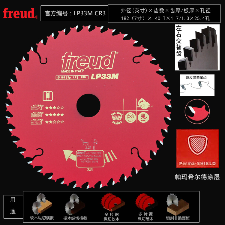 Original imported sharp invincible FREUD woodworking multi-chip saw blade with scraper ultra-thin alloy saw blade 7)8)9)10) 12 inches