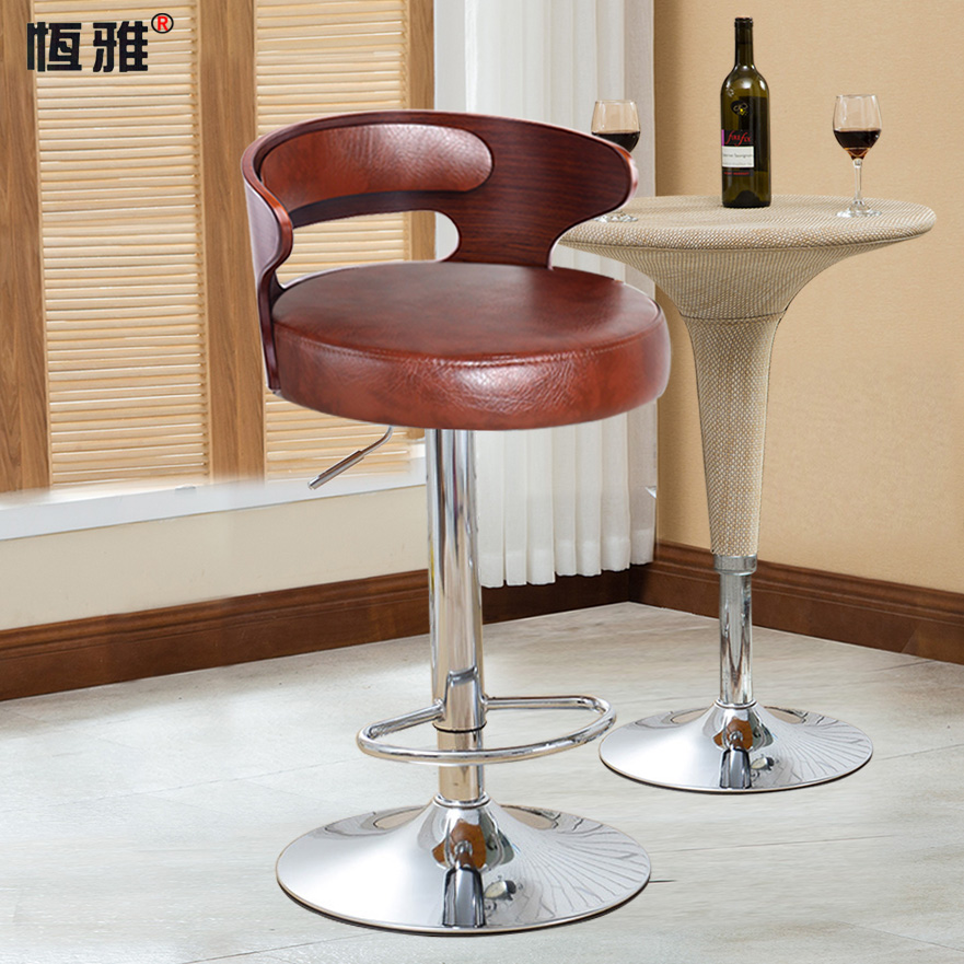 Bar stool Nordic bar chair bar stool household rotary lift chair solid wood backrest cashier front desk chair high stool