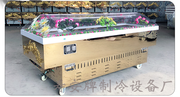 Hongda's new golden titanium alloy plate crystal coffin ice coffin refrigerated coffin ice bed urn funeral supplies