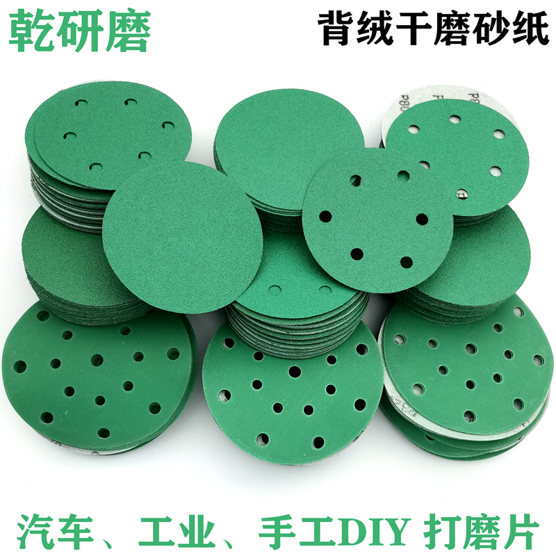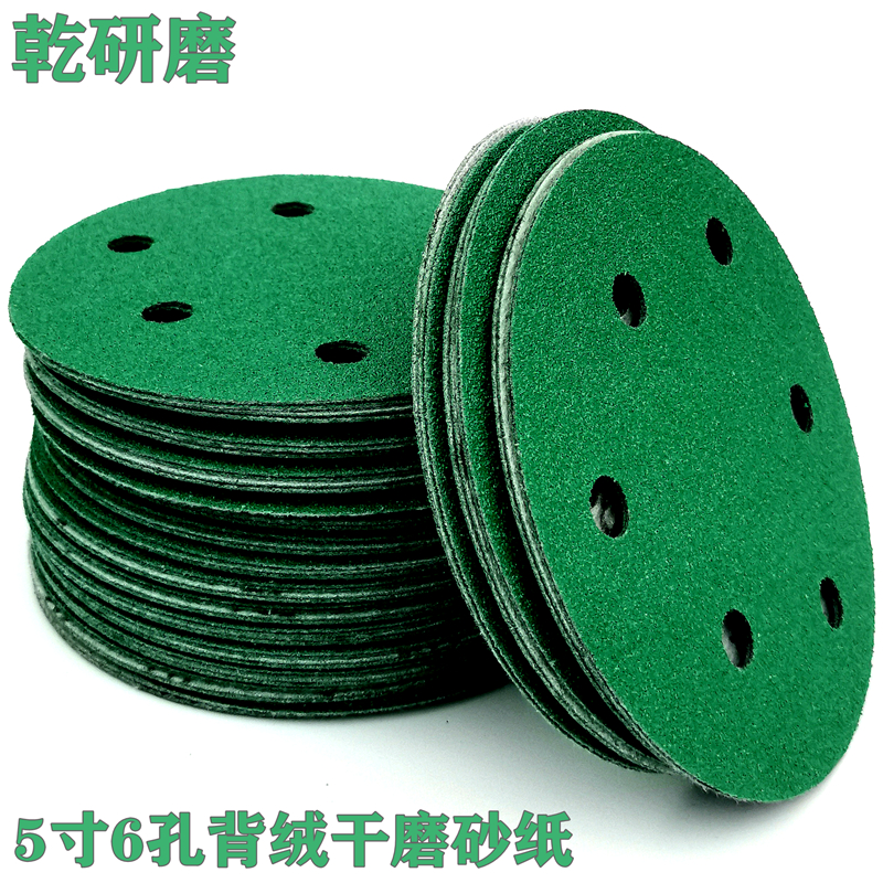 Dry abrasive paper 5 inch 6 inch 17 hole dry grinding green sand car atomic ash industrial metal Stone back velvet grinding sheet