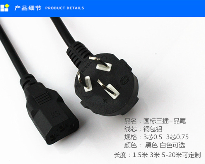 GB standard power cord three-hole three-core with plug 0.75 square 1.5m rice cooker computer host power cord