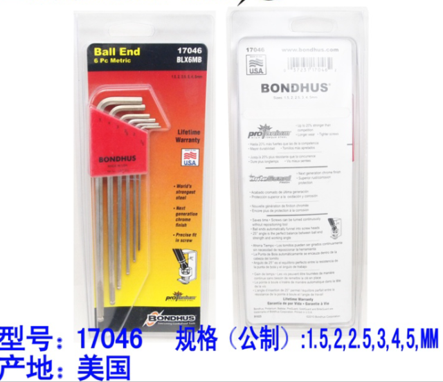 US BONDHUS Bombou Head Bolton 17046 17092 17095 17099 17099 Head Hexagon Wrench