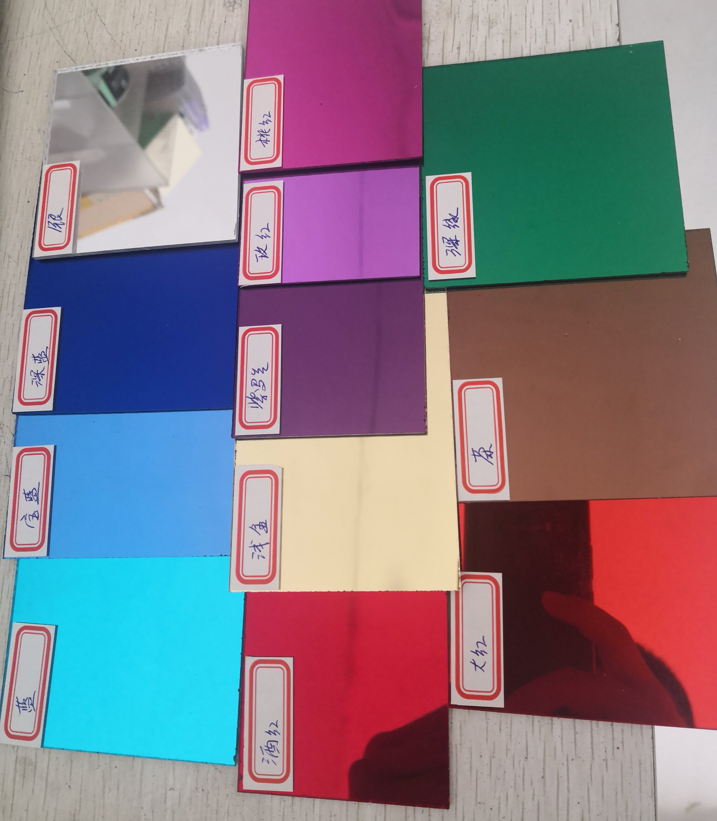 Silver mirror Light gold mirror Big red mirror Wine red mirror Pink mirror Rose red mirror Light blue mirror Royal blue mirror Dark blue mirror Violet blue mirror Black gray mirror Dark green mirror Double-sided silver half lens (Melaleuca mirror Abyss mirror)Black mirror Yellow copper tea mirror Rose gold