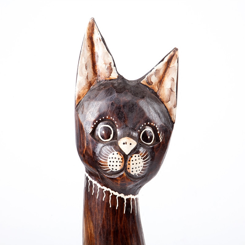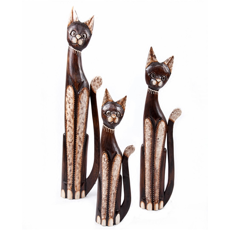 Bali Imported Solid Wood Carving Painted Cat Ornament Creative Home Soft Decoration Wooden Handicraft Gift
