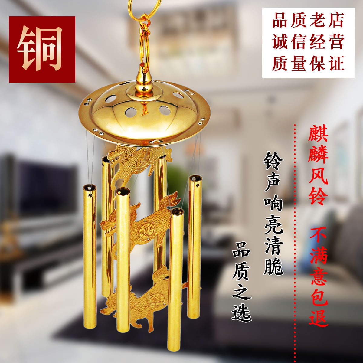 Feng Shui Pavilion Copper wind chimes Door pendant Six-tube Unicorn metal copper bell clang Home decoration gift