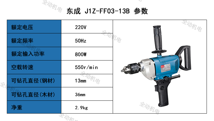 Dongcheng power tool J1Z-FF-03-13B electric drill 800W dual handlebar handheld electric drill