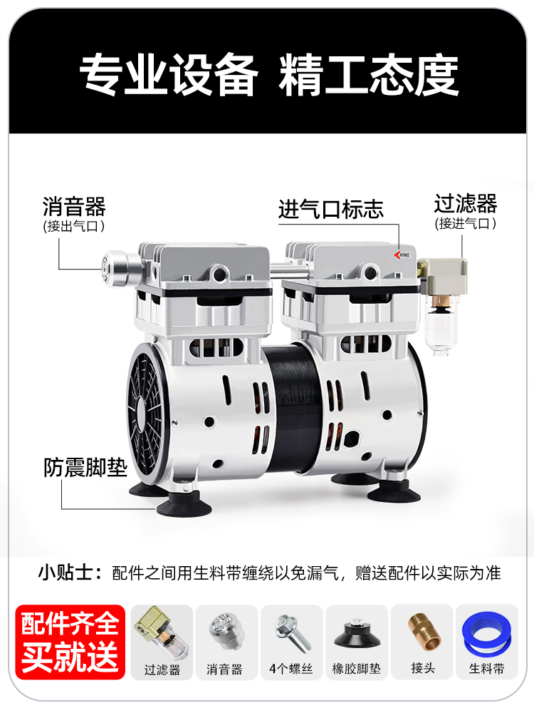 Oil-free vacuum pump industrial silent small pump electric vacuum negative pressure pump high power vacuum suction pump