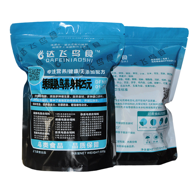 Dafei bird food 13 embroidered eye bird pellet feed embroidered eye feed red rib dark green eye waterproof hand embroidered eye bird food