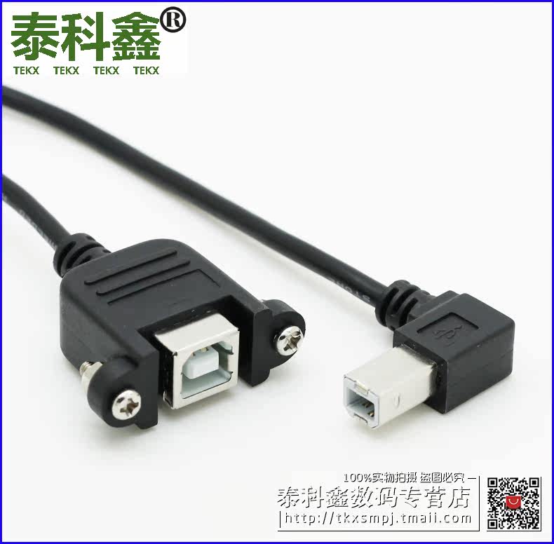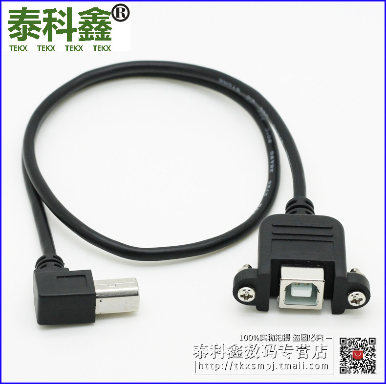 90 degree elbow USB-B male to female extension cord print port extension cord with screw hole