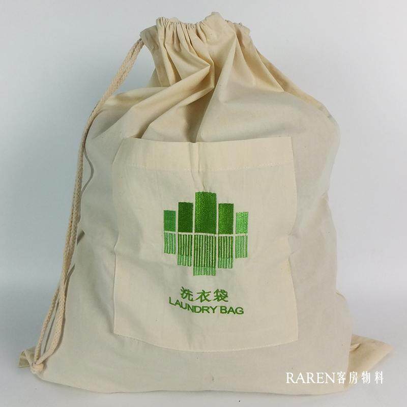 Customized hotel room Laundry bag pure cotton-friendly dirty bag rope canvas bag embroidery logo
