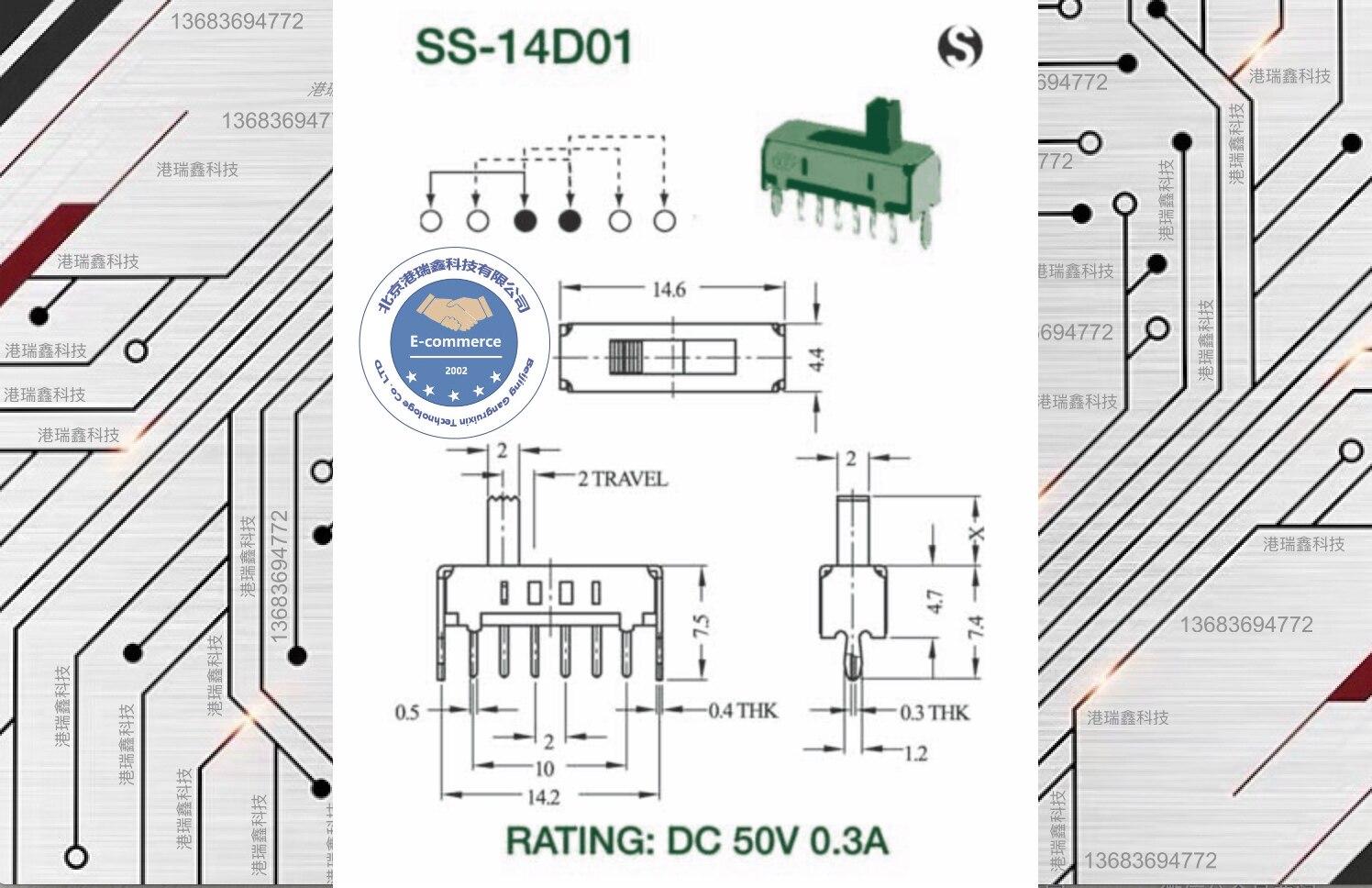 SS-14D01 Small toggle switch DC DC sliding 6 feet 4 gear spacing 2MM circuit board welding switch